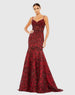 Red Sequined Illusion Corset Trumpet Gown