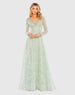 Green Crystal Embellished Long Sleeve V Neck Gown