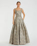 Make a statement in this stunning metallic striped gown. Featuring a modern animal-inspired print, chic square neckline, and elegant box pleats, it's the perfect blend of contemporary flair and timeless sophistication.