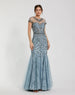 Blue Embellished Lace Evening Gown with Illusion Neckline