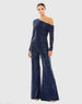 Blue Sequined Drop Shoulder Long Sleeve Jumpsuit