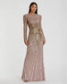 Made in an ultra-fine tulle fabric, this floor-grazing dress is embellished with rays of sequins. A sleek column shape with a high neckline and fitted long sleeves delivers a chic, contemporary look, while a beaded belt encircles your waist for a flattering fit.