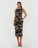 Black Velvet High Neck Sequined Midi Dress with Multicolor Embroidery