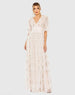 This gown features an empire waist, creating a flattering silhouette. The ruffle detail on the A-line skirt adds a touch of whimsy and movement. Perfect for weddings or formal events, this gown ensures you'll look and feel beautiful with its elegant design.