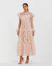 Pink Tiered Ruffle Trim Long Sleeve Midi Dress