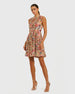 Multicolor Micro Ruffle High Neck A-Line Mini Dress