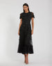 Black Embellished High Neck Flutter Sleeve A Line Dress