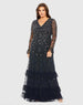 Elevate your look in our Fabulous V-Neck Embellished Long Flutter Sleeve Gown. Featuring stunning embellishments and flowing flutter sleeves, this gown is perfect for elegant events.