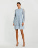 Blue Floral Mesh Long Sleeve Micro Ruffle Mini Dress