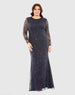 Glamour meets grace in our plus-size Long Sleeve Mesh Embellished Gown. Featuring elegant mesh and intricate embellishments, this gown is perfect for special occasion events.
