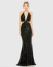Black Cut Out Halter Tie Back Sequin Gown