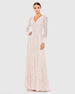 • Fully lined through bodice and skirt; semi-sheer unlined long sleeves