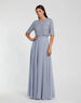 Exude elegance and grace in this beaded chiffon gown. Crafted from flowing chiffon fabric, it seamlessly blends comfort and sophistication. Perfect for formal occasions and evening events, this timeless gown is sure to make a statement.