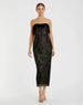 Elegant lace fabric dress featuring a strapless neckline and sleeveless design, offering a chic and timeless look. The feather-embellished neckline adds a luxurious touch, while the back vent provides ease of movement. Perfect for formal events, evening parties, or special occasions, this dress combines delicate craftsmanship with modern sophistication.