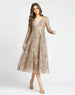 Embrace elegance with this long sleeve midi with a v-neckline. Hand-embellished and embroidered with heat-set crystals, this dress exudes luxury. The sleeves are sheer while the bodice and skirt are fully lined. Make a statement with this elegant midi dress.