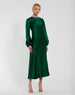 Elevate your look with our High Neck Long Sleeve Crystal Detail Dress. Crafted from luxurious satin fabric, the long puff sleeves add a touch of drama while the crystal neck detailing adds a touch of elegance. Perfect for any formal occasion, this dress will make you feel sophisticated and chic.
