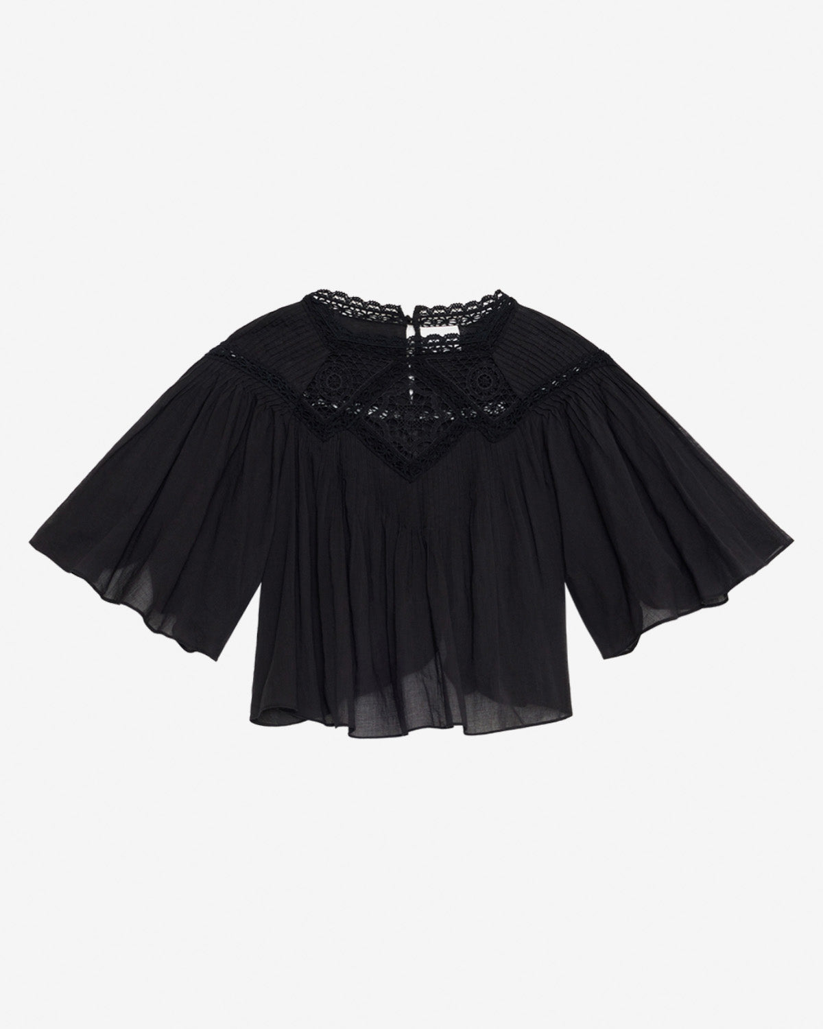 Plain-colored cotton voile and lace top