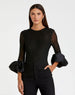 Black Mesh Long Sleeve Bodysuit With Satin Puff Sleeve - FINAL SALE