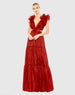 Red Ruffled Shoulder Cut Out Soft Tie Back Tiered Gown