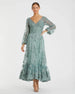 Our V-Neck Mesh Puff Sleeve A-Line Embellished Dress—a lovely choice for your special events. With its simple V-neckline and long puff sleeves, this dress offers a vintage lace look. Decorated with beautiful floral details, it adds a charming touch.